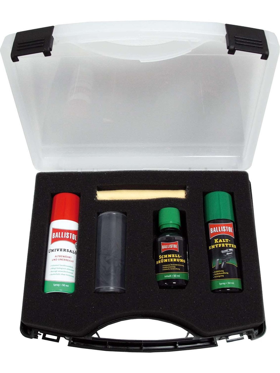 Ballistol Quick Bluing Çantalı Set, metal yüzeylerde oluşan çizik, çatlak ve hafif deformasyonları hızlıca onarmak ve koruma altına almak için hazırlanmış eksiksiz bir bakım setidir.