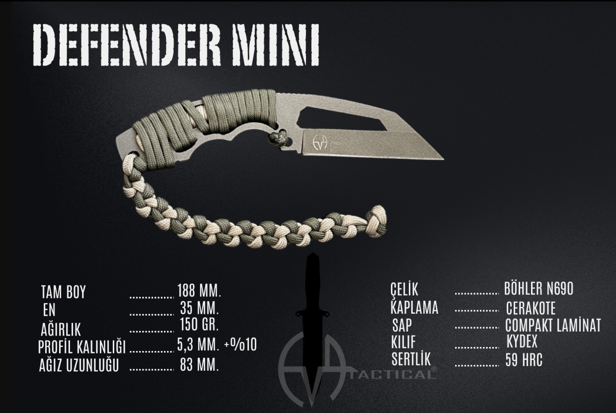 Gizli taşıma, taktik setinizde yedek bıçak ya da koleksiyonunuzda dikkat çeken bir parça arıyorsanız, EVA TACTICAL DEFENDER MINI, kompakt yapısına rağmen sunduğu performansla güçlü bir seçenek olarak öne çıkıyor.