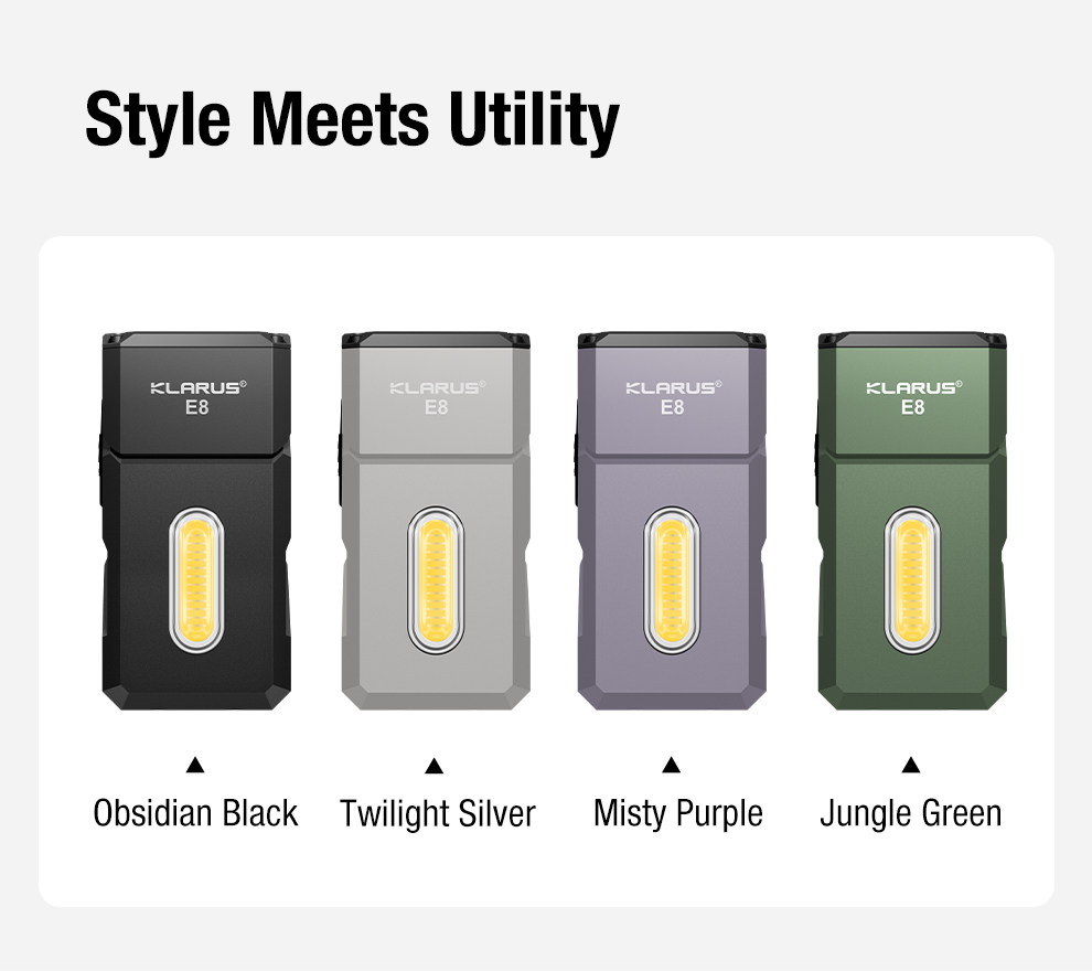 | Kutu İçeriği | KLARUS E8, USB-C kablo, bilek askısı, kullanım kılavuzu |