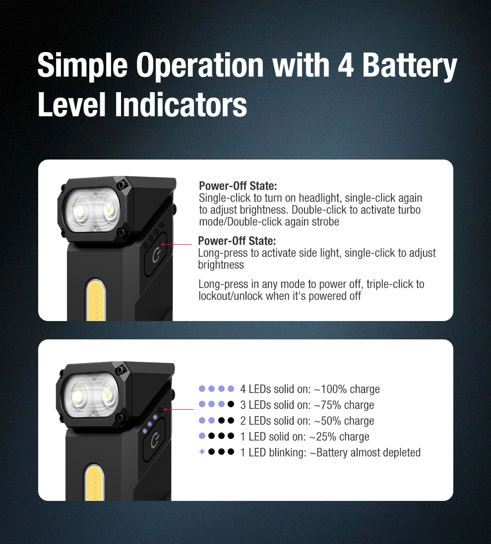 Güçlü mıknatıslı tabanı, 180° dönebilen başlığı ve klipsli kompakt gövdesi sayesinde eller serbest kalır – ister metal yüzeyde ister kemerde!