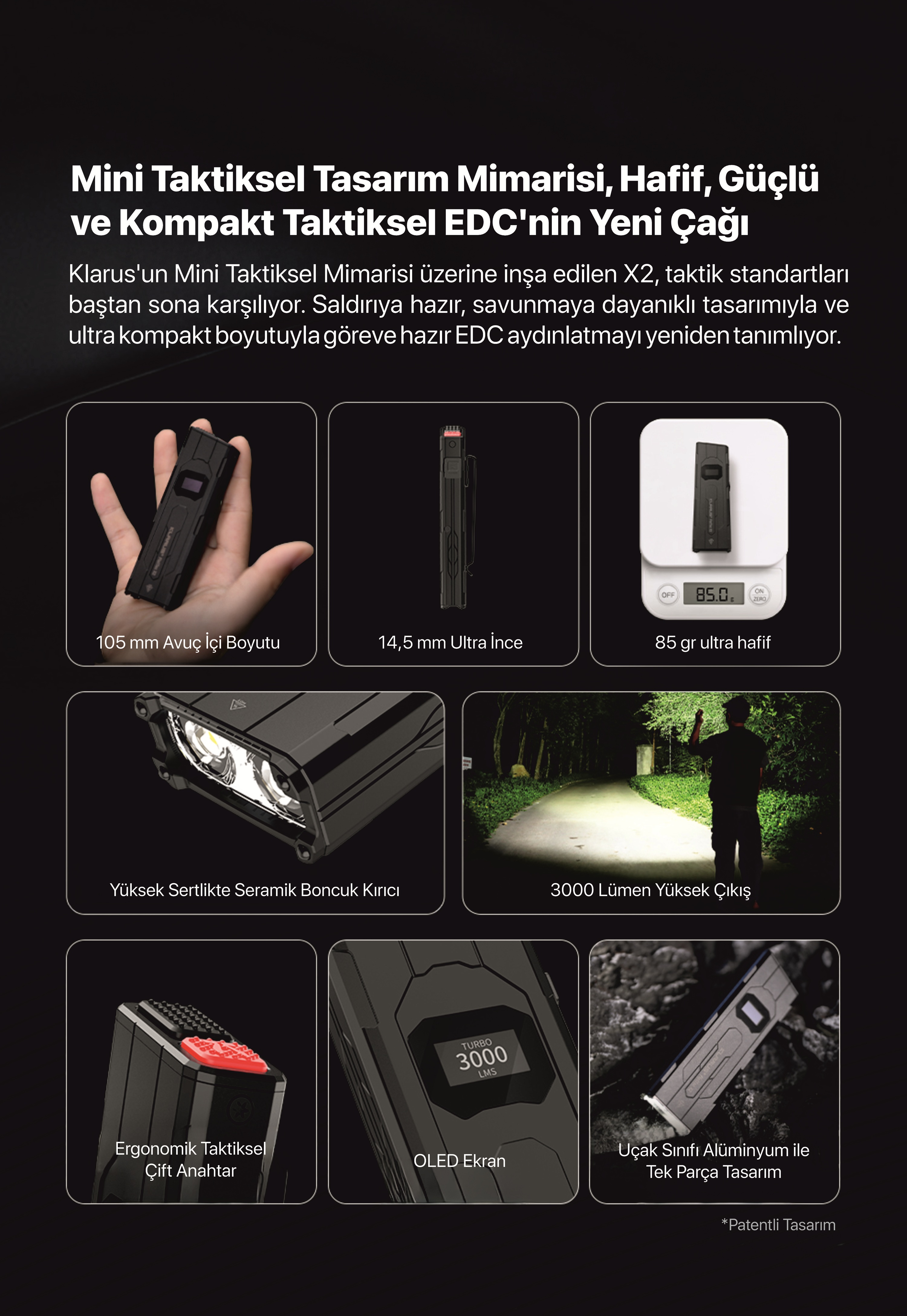 KLARUS FlatTac X2, tek tuşla 3000 lümen “Blinding Defense” modu ve göz alıcı strobe ışığıyla karanlığı kişisel korumanız haline getirir.