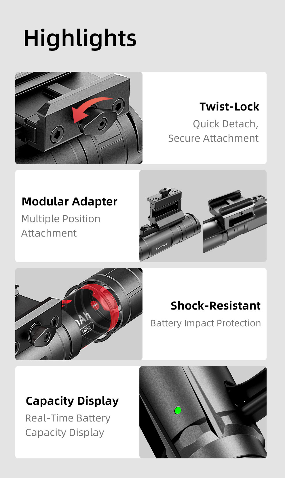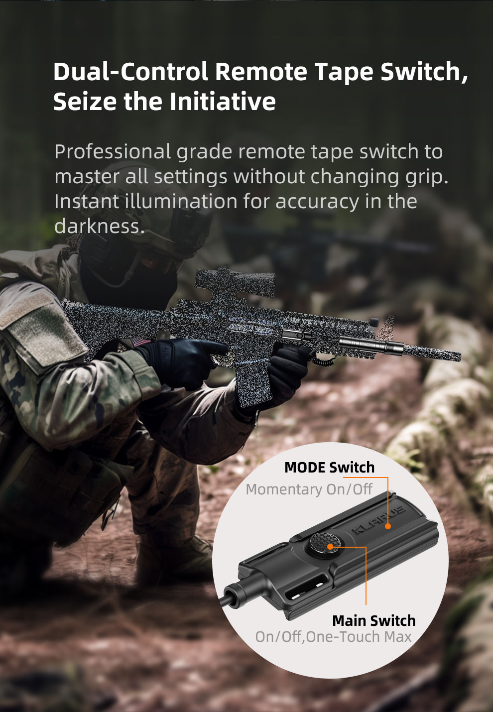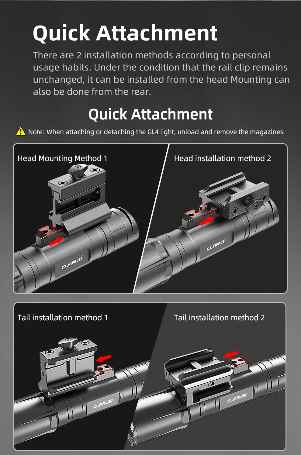 Profesyonel kullanıcılar için tasarlanan KLARUS GL4, taktik tüfek fenerlerinde çıtayı yükseltiyor. 3300 lümen ışık gücü, 370 metre etkili menzil ve hızlı montaj sistemleriyle, zorlu operasyonlarda ve outdoor senaryolarda sizi asla yarı yolda bırakmaz.