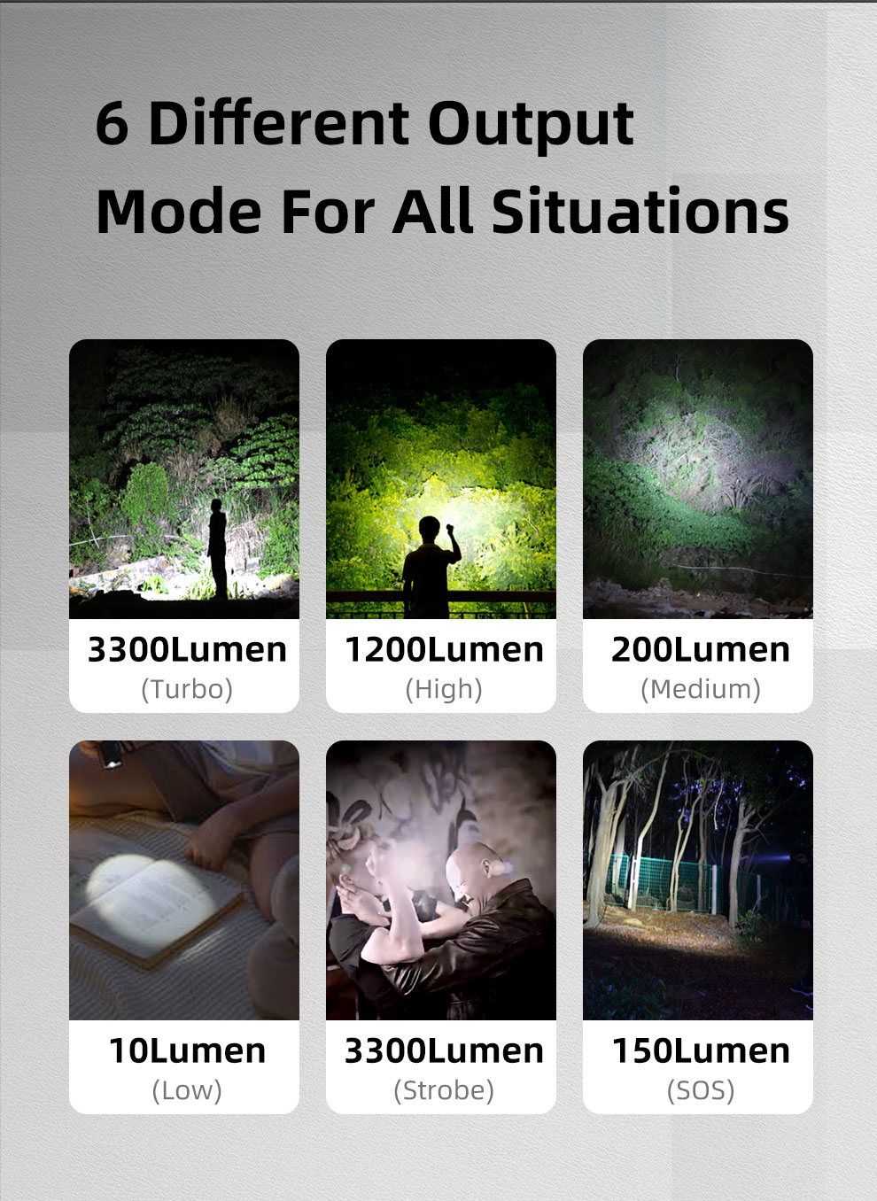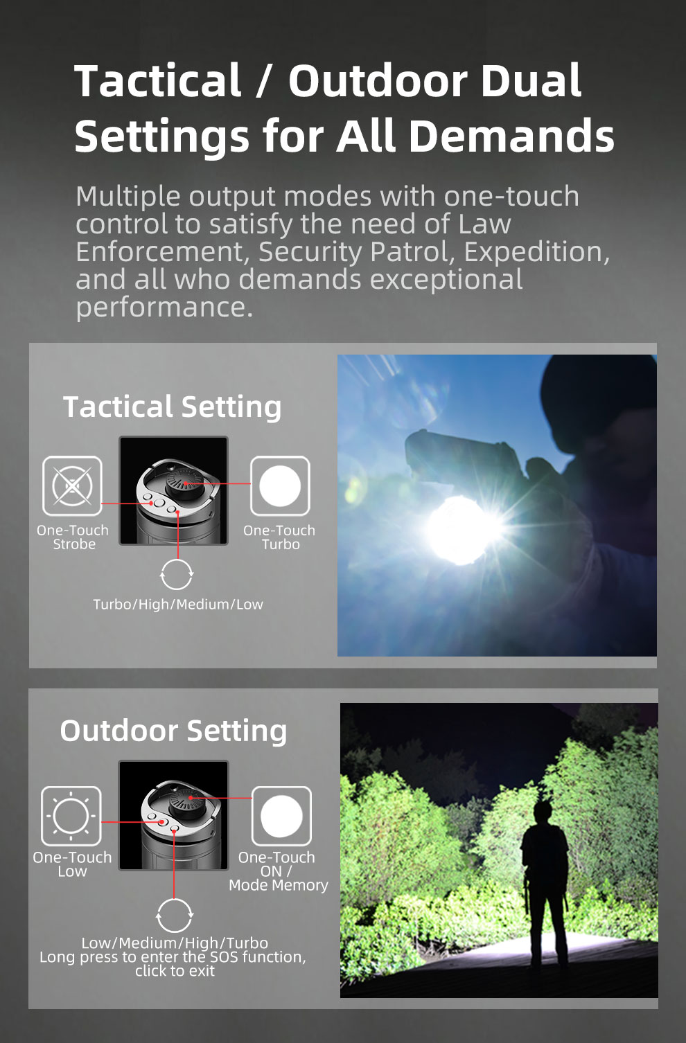 Çoklu Modlar: Turbo, Yüksek, Orta, Düşük ve Strobe ile tüm taktik senaryolara uyum.
