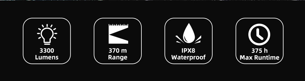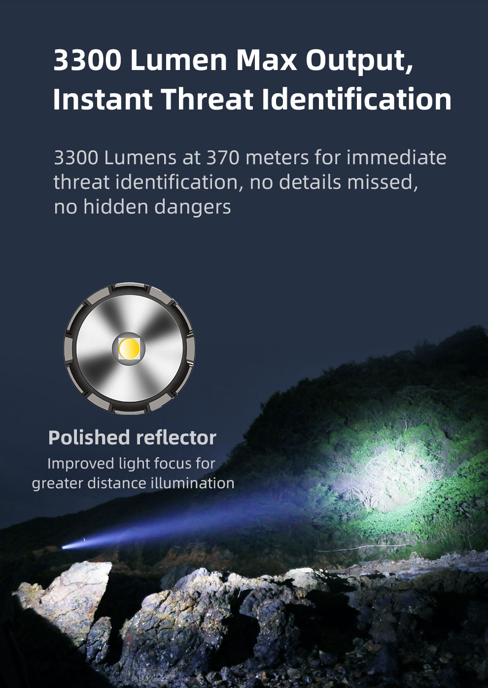 3300 Lümen / 370 Metre: Tek tuşla gündüz parlaklığında görüş.
