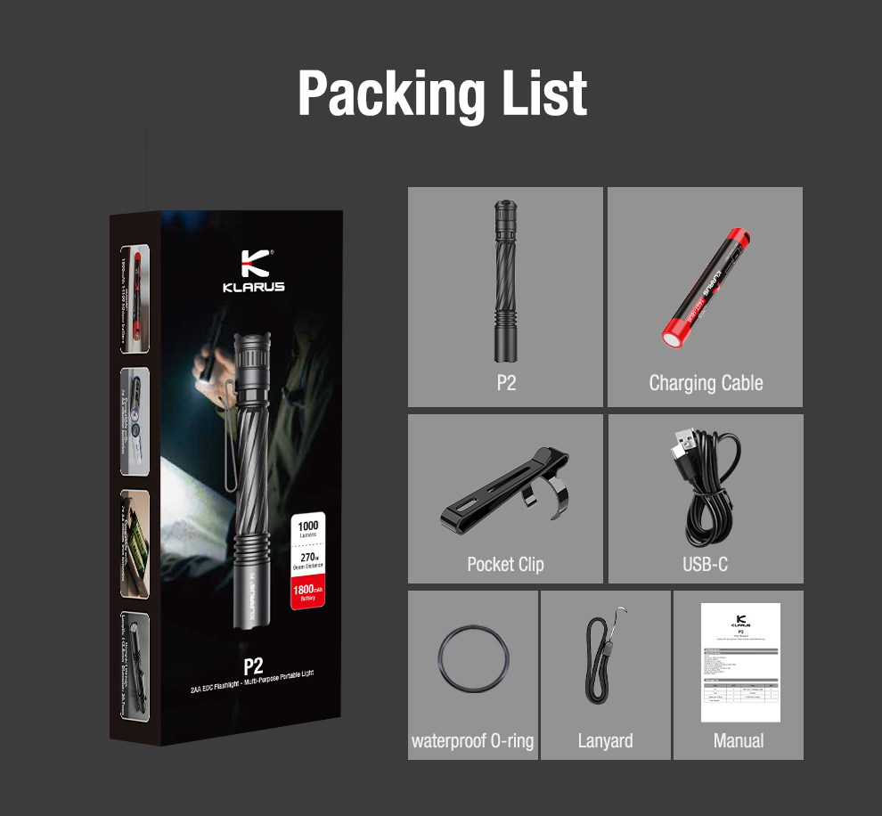 KLARUS P2; profesyoneller, güvenlik görevlileri, kampçılar ve gece çalışanlar için tasarlanmış yüksek performanslı bir EDC el feneridir.