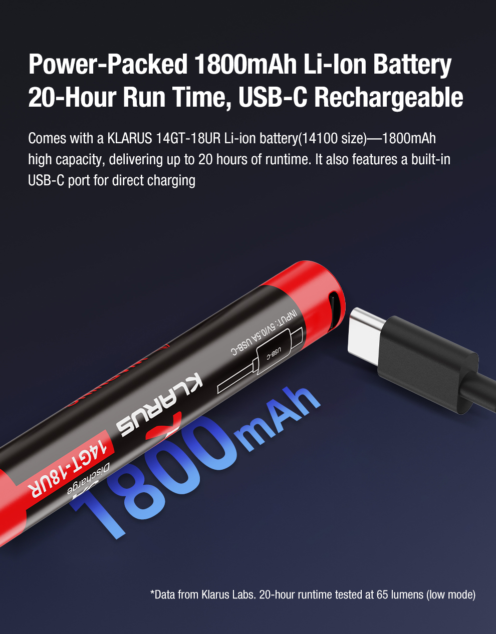 1800 mAh dahili Li-ion pil, USB-C bağlantısıyla hızlı şarj olur.
