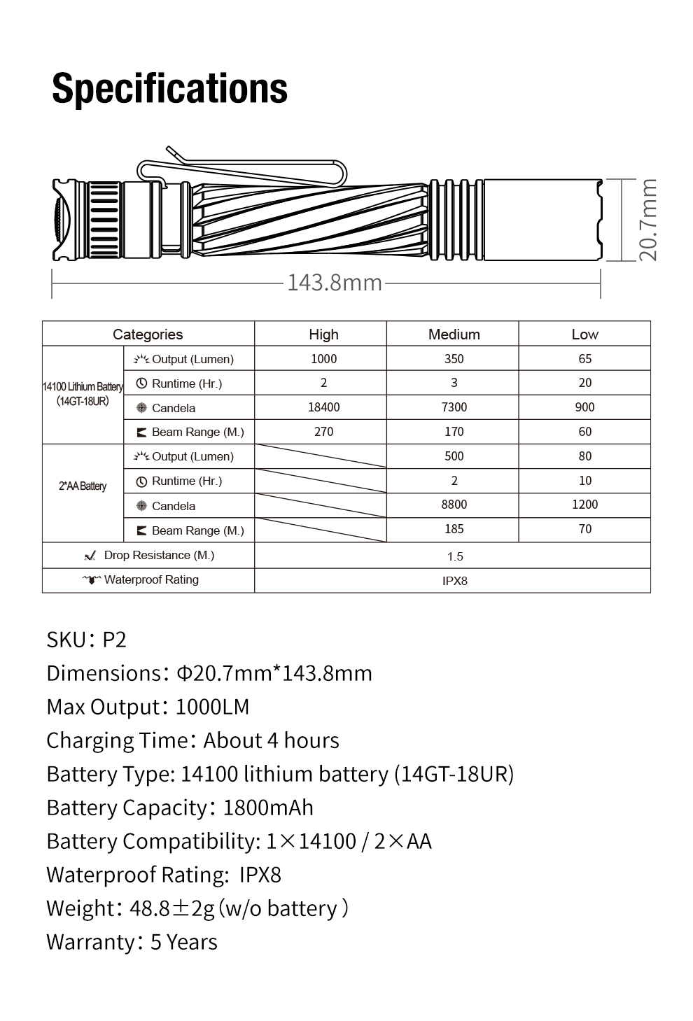 Sadece 48,8 gram ağırlığında ve 143,8 mm uzunluğundaki gövdesinde, 1000 lümen güç ve 270 metre menzil barındırır.