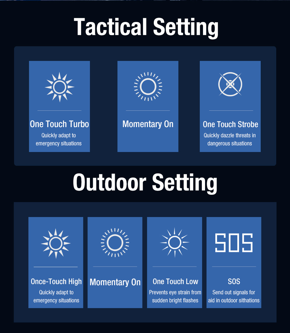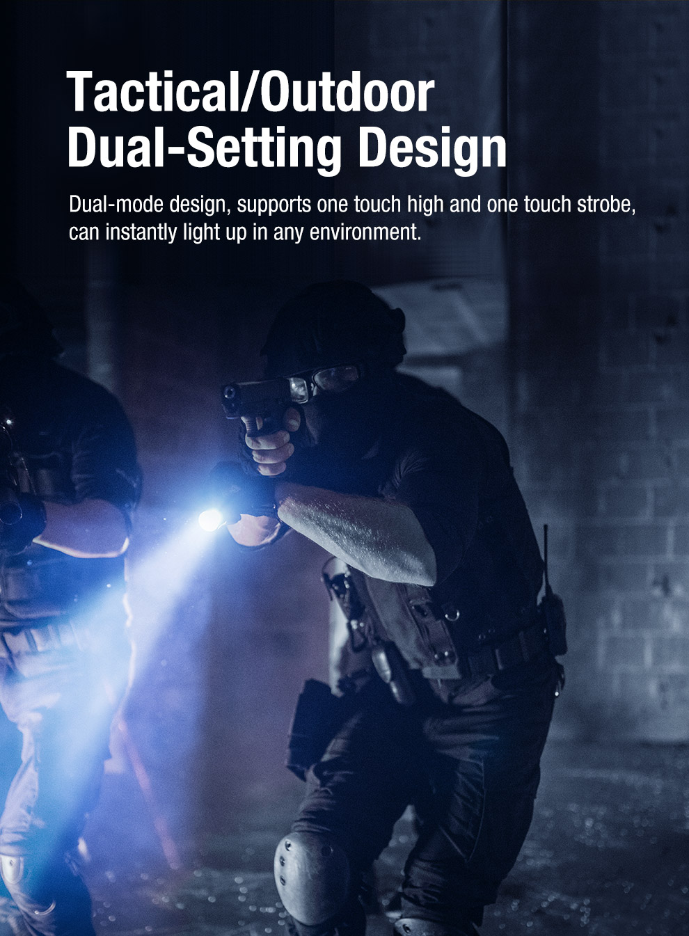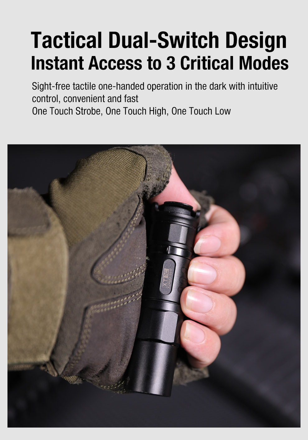 Çift düğmeli (Dual-Switch) taktik arayüz – tek dokunuşla açma, flaş ve mod geçişi