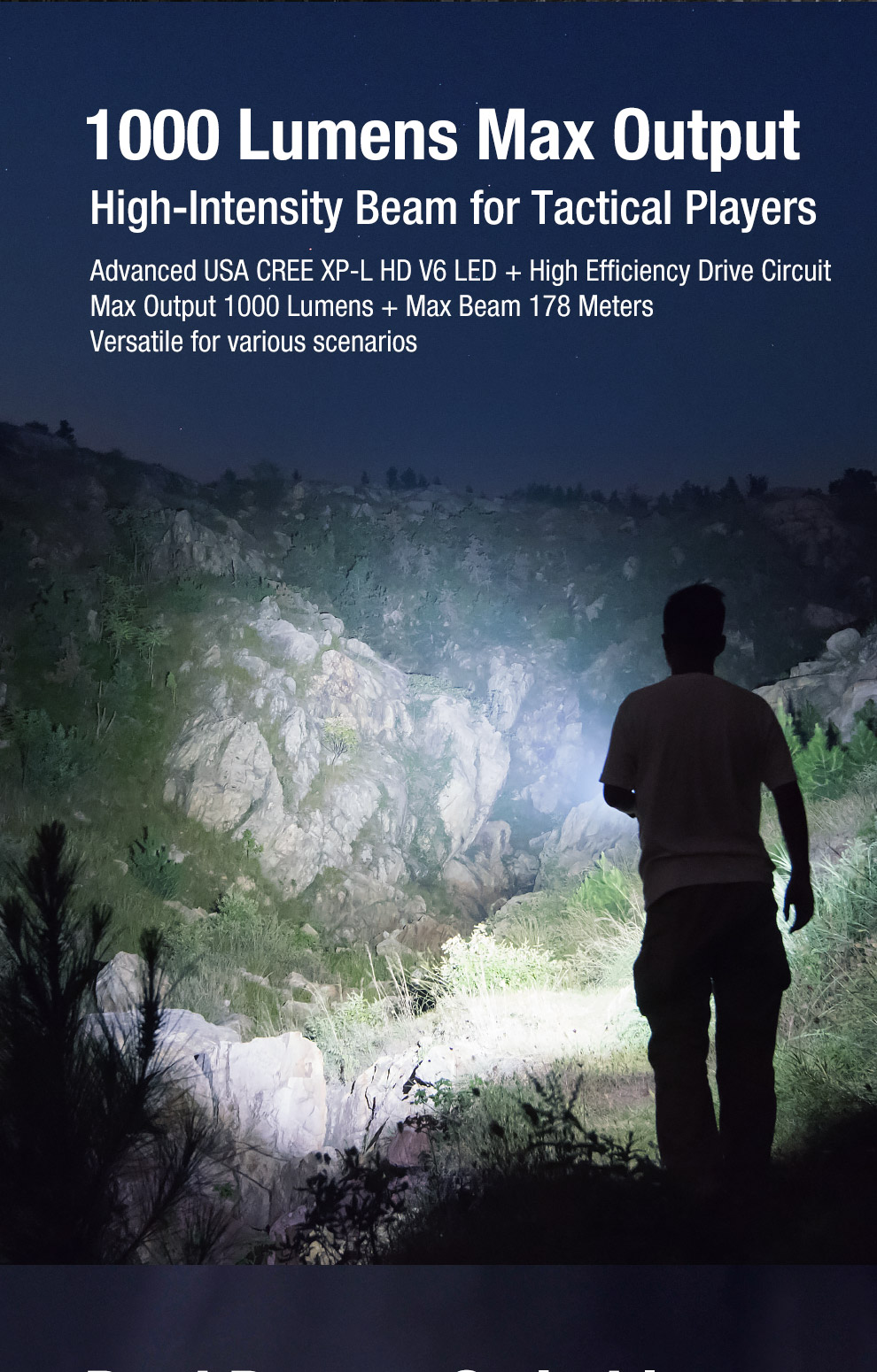 KLARUS XT1C, yalnızca 56 gramlık hafif gövdesine rağmen 1000 lümen ışık çıkışı ve 178 metre menziliyle görev, devriye, kamp ve EDC kullanımı için üstün performans sunar.
