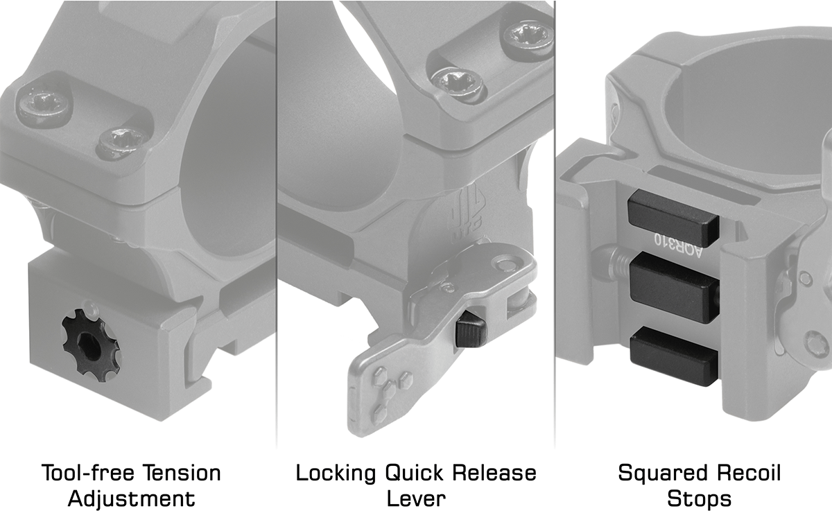 Leapers UTG ACCU-SYNC 30 mm QR dürbün halkaları, düşük profil yapısıyla kompakt ve dengeli bir montaj çözümü sunar. Hızlı sökülebilir (Quick Release) sistemi sayesinde sıfırı koruyarak pratik sök-tak imkânı sağlar. Kilitli QD kol mekanizması ve kare geri tepme durdurucular, stabil ve tekrarlanabilir sıfır tutuşu sağlar. Hafifletme oyukları, dayanıklılıktan ödün vermeden toplam ağırlığı azaltır. Yuvarlatılmış kenar ve köşeler, takılma riskini azaltarak güvenli kullanım sunar. .338 Lapua Magnum kalibreye kadar dayanıklılık derecesine sahiptir.
