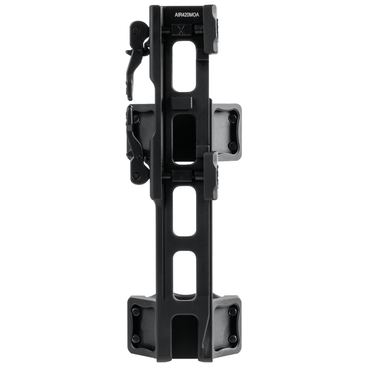 Leapers UTG ACCU-SYNC QR Cantilever Mount, 34 mm tüp çapına sahip dürbünler için tasarlanmış, yüksek dayanımlı ve profesyonel bir montaj ayağıdır. 20 MOA dikey kompanzasyon, uzun menzil atışlarında elevasyon ayar aralığını artırarak daha hassas nişan alma imkânı sunar. 70 mm offset cantilever yapısı, özellikle AR platformları ve ileri konumlandırma gerektiren sistemler için ideal ergonomi sağlar. Kilitli Quick Release (QR) kolları sayesinde hızlı sök-tak yapılabilir ve sıfır ayarı tekrarlanabilir şekilde korunur. Aletsiz gerginlik ayarı ve kare geri tepme durdurucular, güçlü geri tepmelerde dahi stabil montaj sağlar.Yuvarlatılmış kenar ve köşeler takılmayı önler, hafifletme oyukları ise toplam ağırlığı azaltır. .338 Lapua Magnum kalibreye kadar dayanıklılık derecesine sahiptir.,