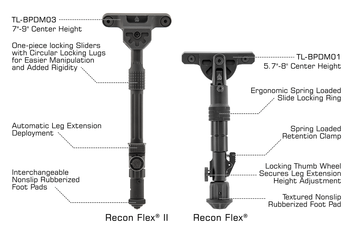 Leapers UTG Recon Flex II M-LOK Bipod Çatal Ayak, M-LOK® uyumlu el kundağına doğrudan monte edilebilen bu hafif bipod, kompakt yapısı ve hızlı kurulum özelliğiyle taktik ve sportif atışlar için ideal bir çözümdür. Otomatik bacak açılımı ve çok kademeli katlanabilir yapısı sayesinde pratik kullanım sunar.