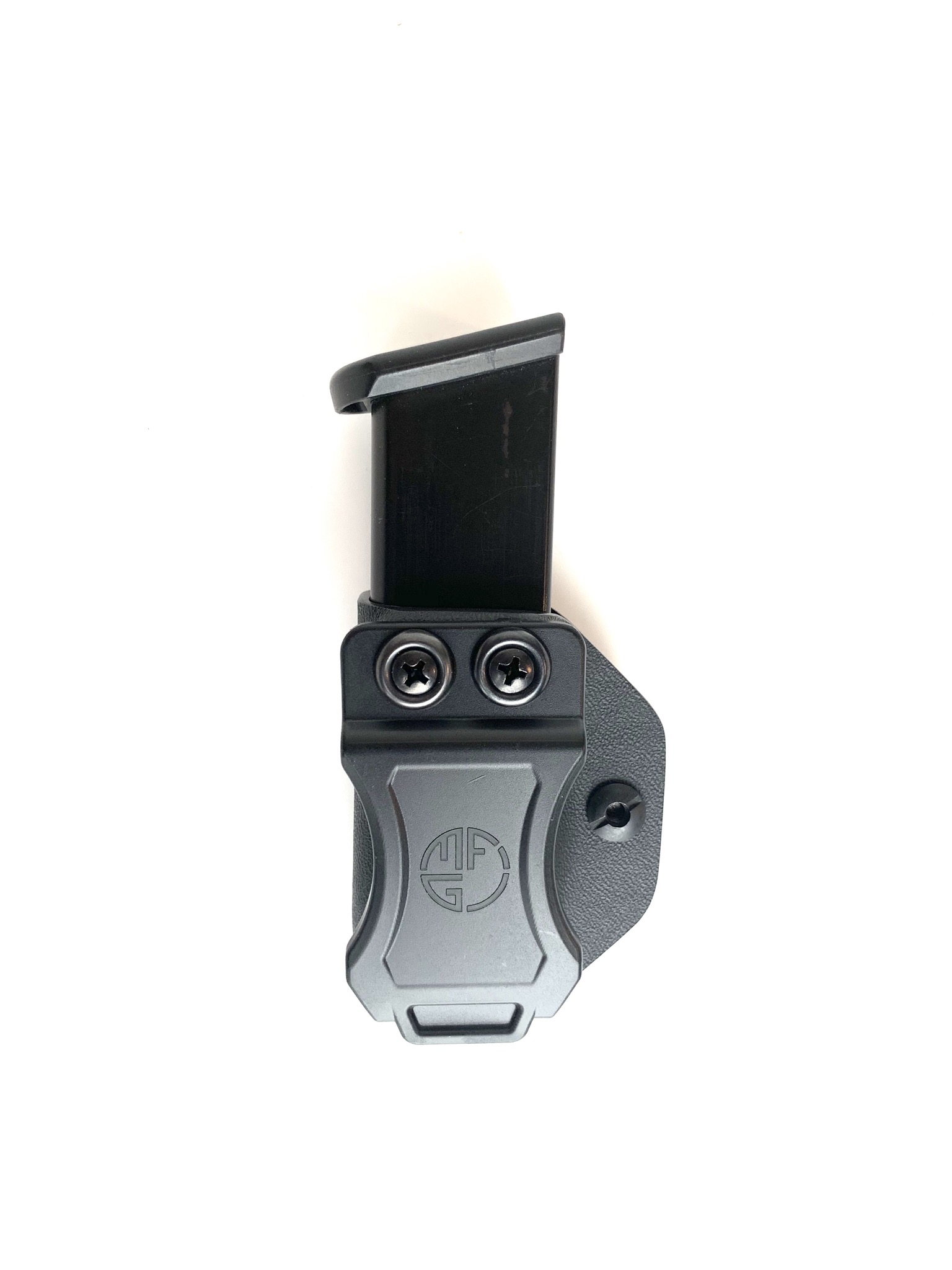Compared to other single Kydex magazine pouches on the market, this model is more compact. This is achieved by positioning the mounting holes of the belt clip closer together than the standard spacing used in typical IWB clips. As a result, the clip stays within the mold dimensions without sticking out, providing a sleek and ergonomic carry.