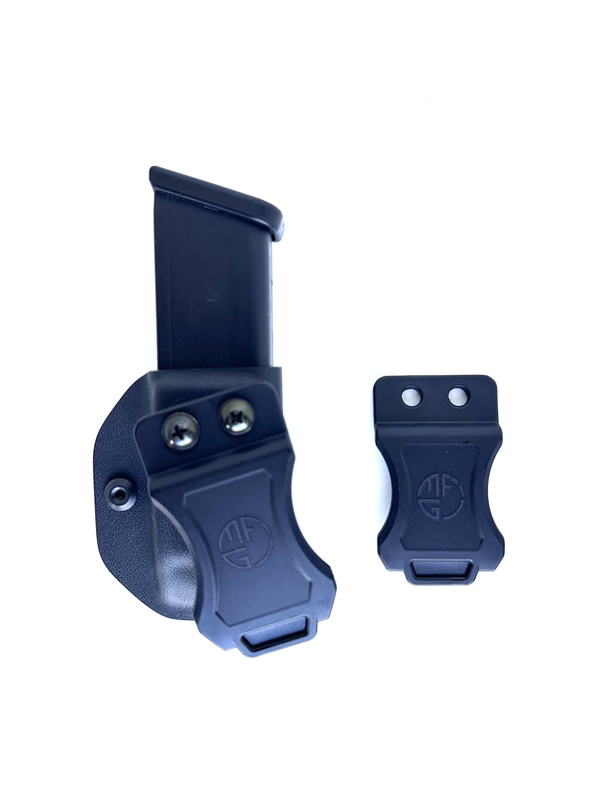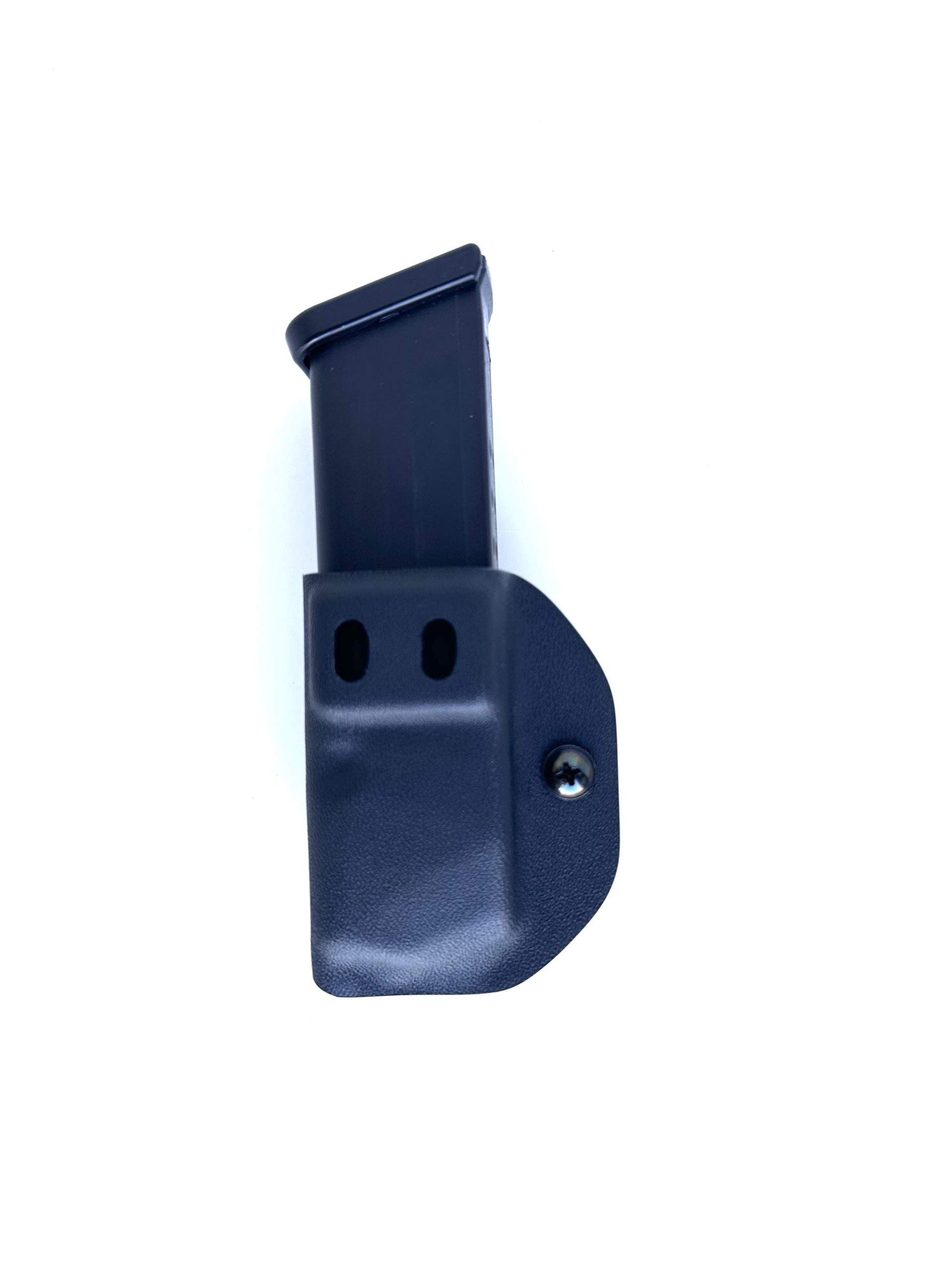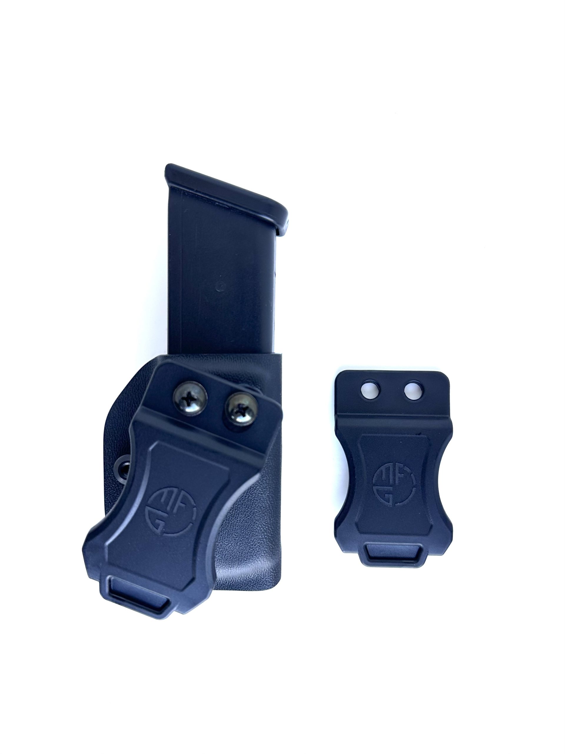 Compared to other single Kydex magazine pouches on the market, this model is more compact. This is achieved by positioning the mounting holes of the belt clip closer together than the standard spacing used in typical IWB clips. As a result, the clip stays within the mold dimensions without sticking out, providing a sleek and ergonomic carry.