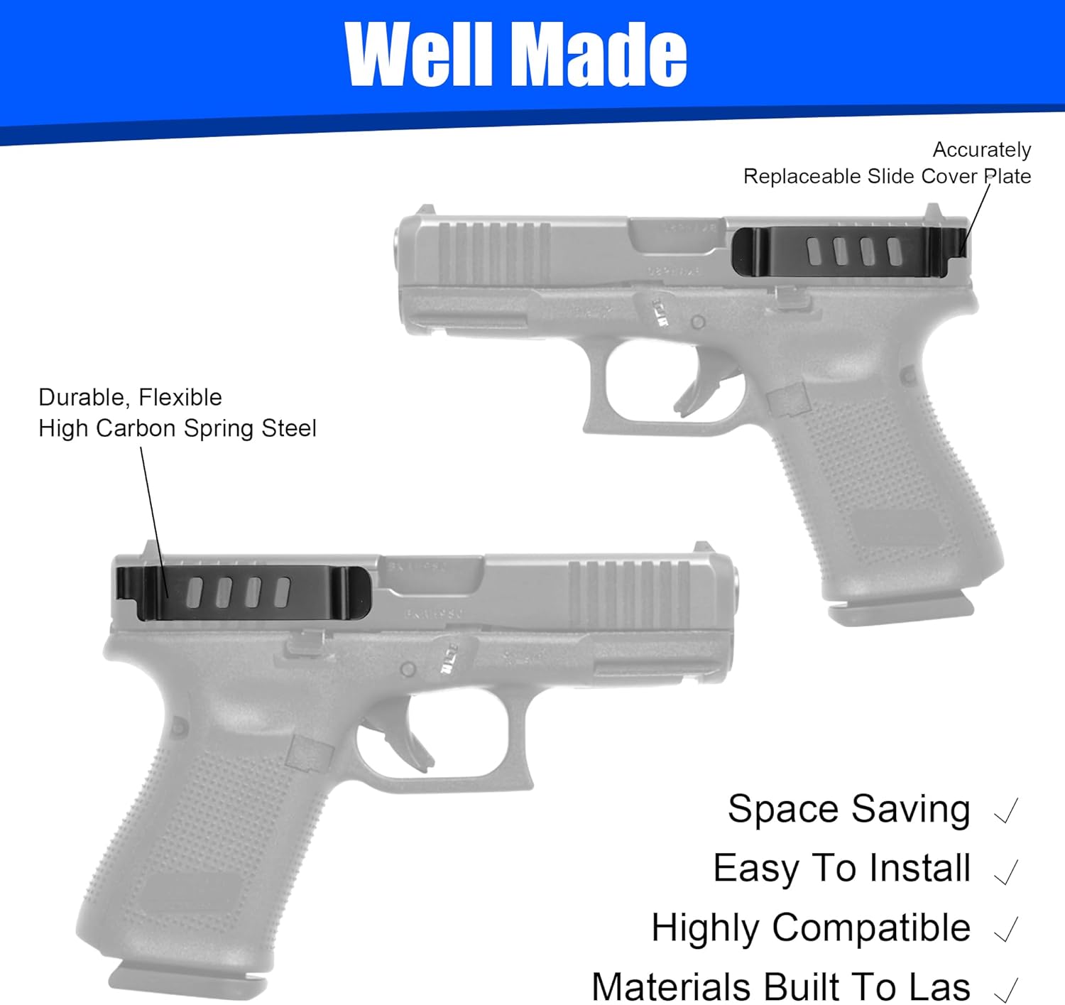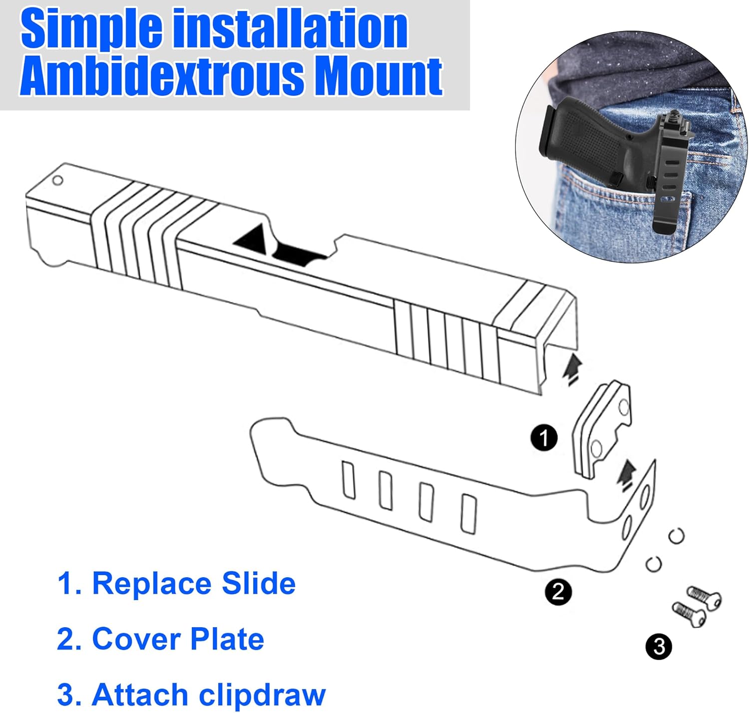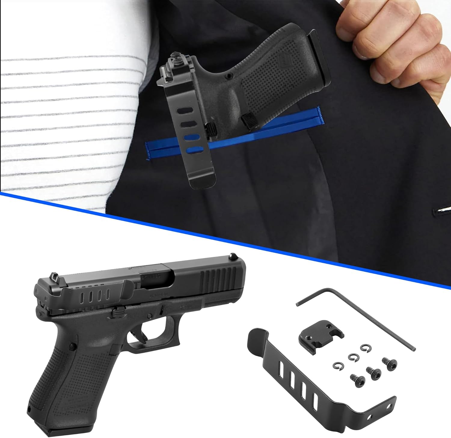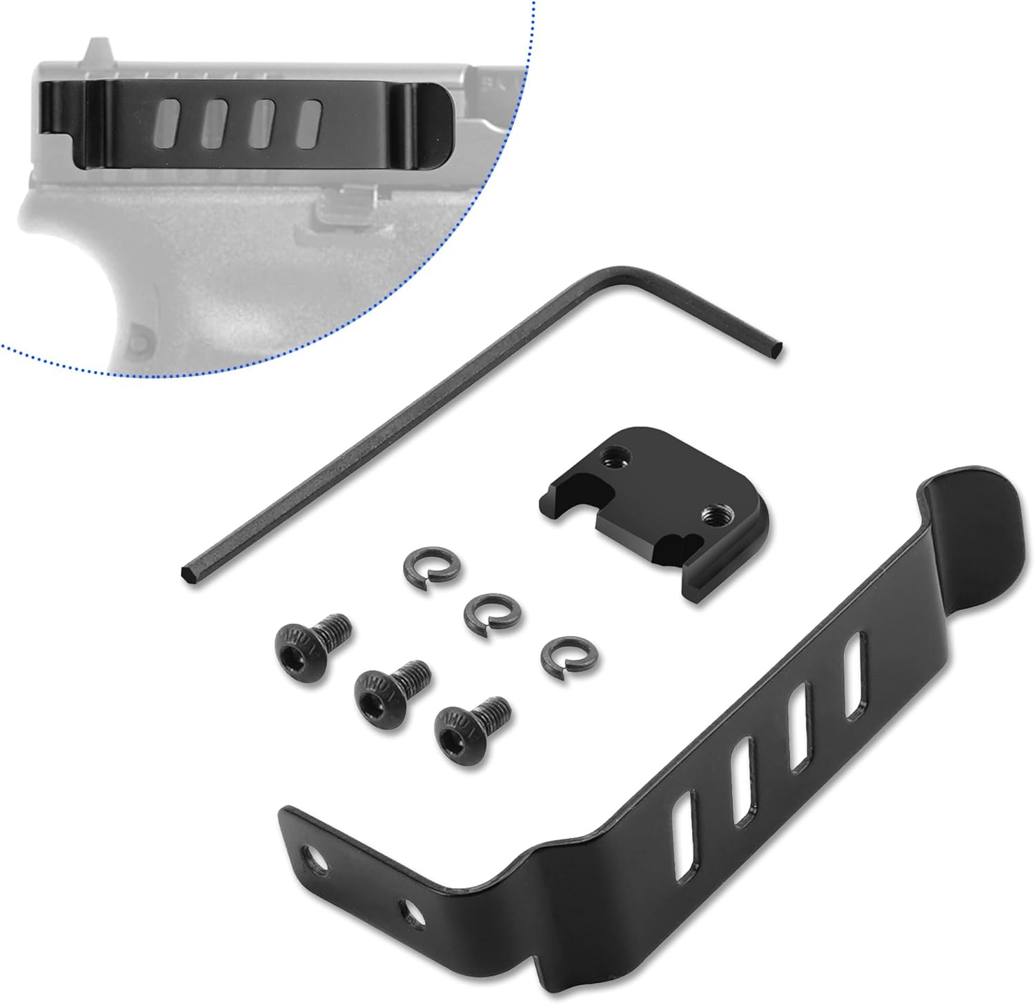 Bu gizli taşıma kemer klipsi, Glock Gen 1–4 modelleri için özel olarak tasarlanmış, hafif ve kompakt yapısıyla günlük kullanımda pratik bir taşıma çözümü sunar. Düşük profil (low profile) tasarımı sayesinde kemer, cep veya yelek üzerinde sade ve düzenli bir kullanım sağlar.