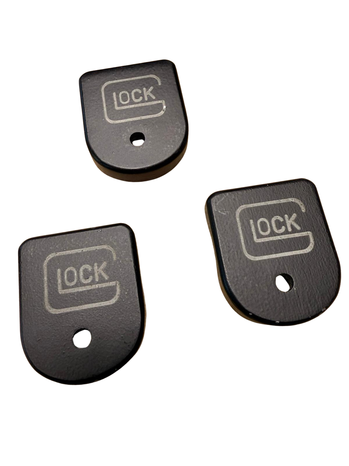 OC PROSHOP tarafından sunulan, Glock 17/19 platformundaki 9mm çift sıra şarjörlerle uyumlu dayanıklı metal mag pad (şarjör alt kapağı) modelidir.