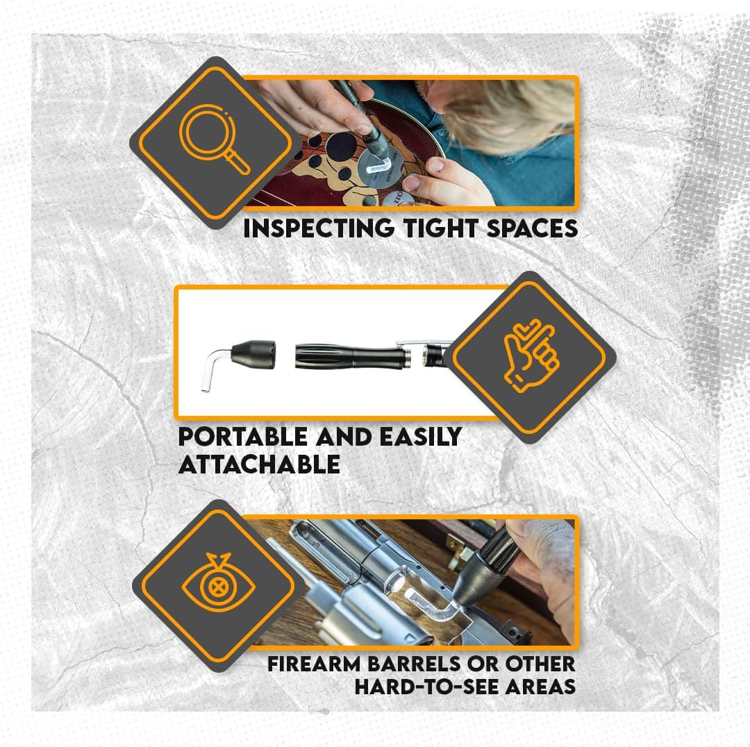 SE Compact Bore Light, namlu içi kontrol ve bakım sırasında net görüş sağlamak için tasarlanmış kompakt ve taşınabilir bir aydınlatma çözümüdür. Fiber-optik akrilik ışık iletimi sayesinde namlu içine güçlü ve odaklı bir ışık verir, detayların kolayca görülmesine yardımcı olur.