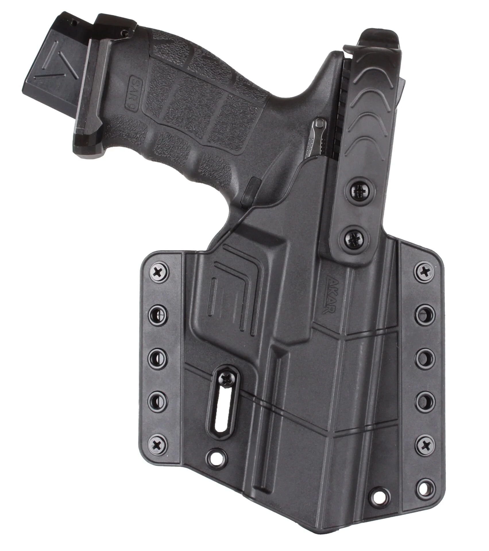 - Ergonomik olarak tasarlanmış kılıf gövde açısı ve bel aparatları silahınızın hissedilen ağırlığının azalmasını ve silahınızı gün boyu konforlu bir şekilde taşımanızı sağlar.
